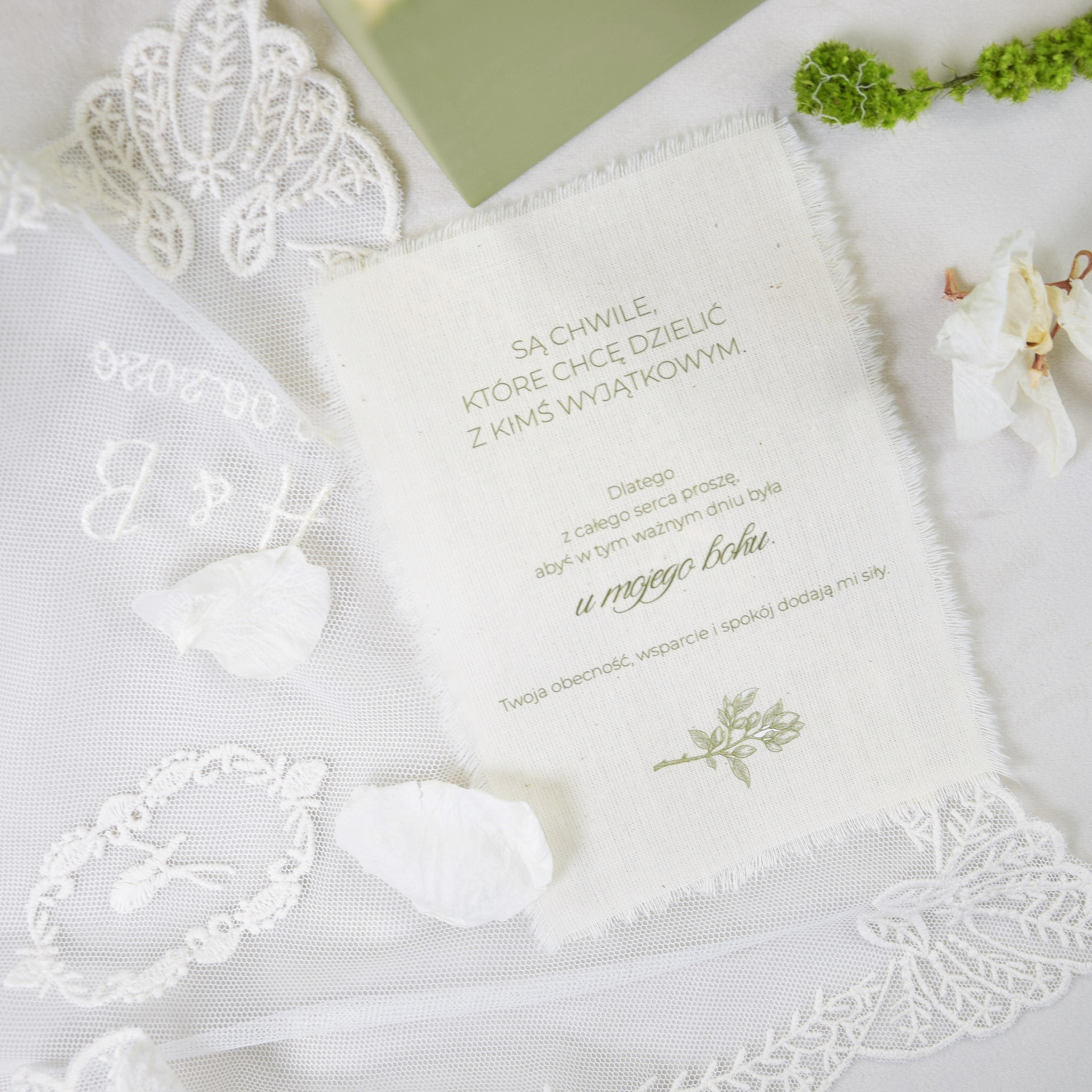 – bawełnianą kartkę z dedykacją (prośba o świadkowanie)