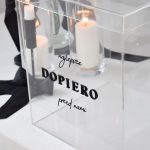 Pudełko na koperty z plexi to nieodzowny element każdego wesela, który zapewnia porządek i bezpieczeństwo cennych upominków od gości. Jego elegancki i nowoczesny design w połączeniu z uniwersalnym napisem sprawia, że jest to produkt, który nie tylko spełnia swoją funkcję, ale także dodaje klasy i stylu każdej uroczystości. Po ślubie może być ponownie wykorzystane lub sprzedane, co czyni je praktycznym i uniwersalnym wyborem.